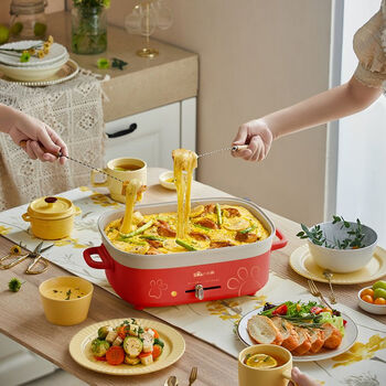 小熊(Bear)电火锅 家用涮烤一体多功能锅料理锅5L大容量 DHG-D50E8可乐红