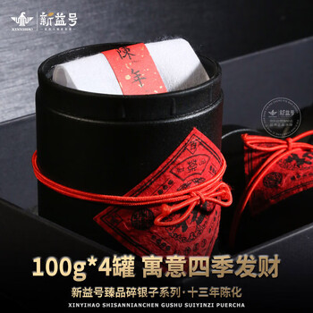 新益号茶叶普洱茶熟茶 十三年糯米香碎银子茶化石易武古树茶礼盒装