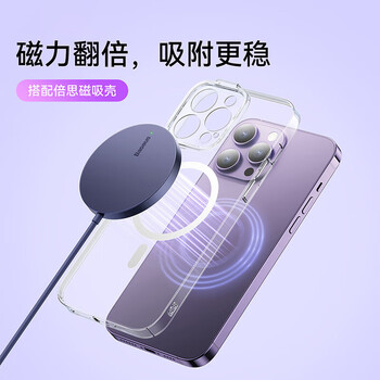 倍思苹果无线充电器iPhone17ProMax支持Magsafe磁吸快充 适用苹果17/16/15华为手机AirPods耳机 白