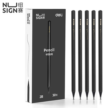纽赛(NUSIGN)黑木石墨书写铅笔六角杆考试美术生素描涂鸦绘画 30支NS723-2B【热门商品】得力旗下高端品牌