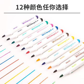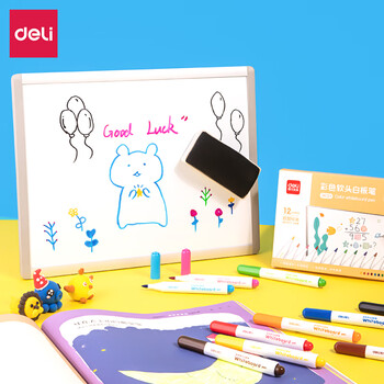 得力(deli)儿童彩色可擦白板笔益智文具套装 马克笔水彩笔老师推荐涂鸦绘画 12支/盒 SK121 儿童节礼物