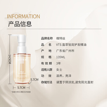 维特丝(vetes)护发精油免洗头发 护发精华改善毛躁烫染修护盈萃铂宠精油135ml