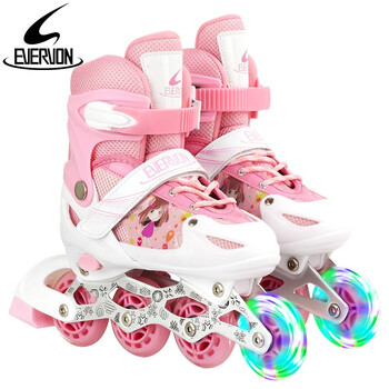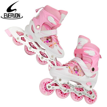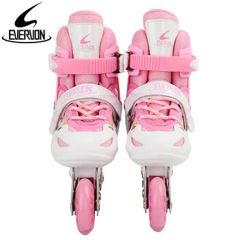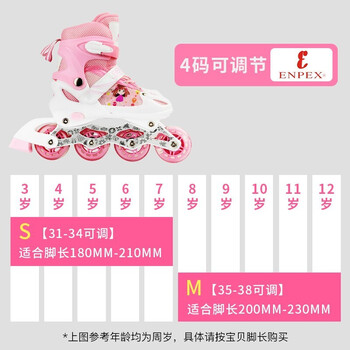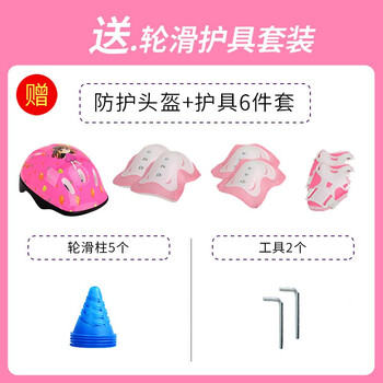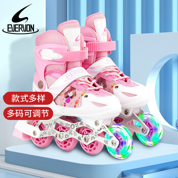 EVERVON轮滑鞋儿童溜冰鞋男女童旱冰鞋337粉色附护具头盔S号适31-34码