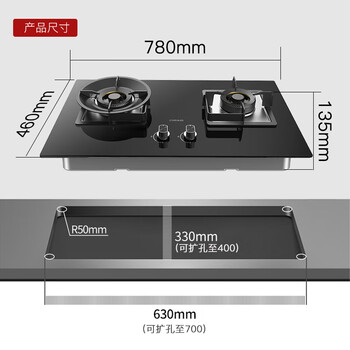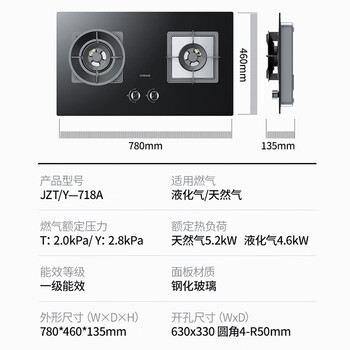 德意(DE&E)燃气灶 天然气 钢化玻璃燃气灶 全尺寸适配 灶具 5.2kW火力68%热效率 聚能猛火 熄火保护JZT-718A