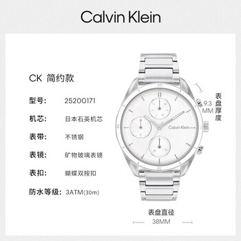 Calvin KleinCK手表动感款钢带石英运动手表女士腕表女神节新年礼物25200171