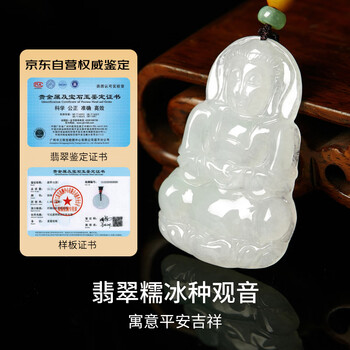 曼丽翠翡翠糯冰观音吊坠水润菩萨玉坠玉挂件大号送男友礼物