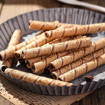 马奇新新进口纯可可脂巧克力注心蛋卷饼干零食休闲食品年货下午茶85g*2罐