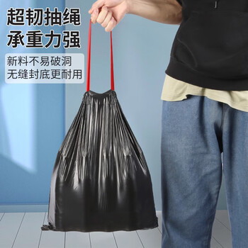 京惠思创抽绳垃圾袋黑色45*50cm*90只0.8丝加厚自动收口手提垃圾桶塑料袋