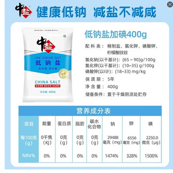 中盐 低钠盐400g【加碘】食用盐京东自营 低钠更健康 吃好盐选中盐