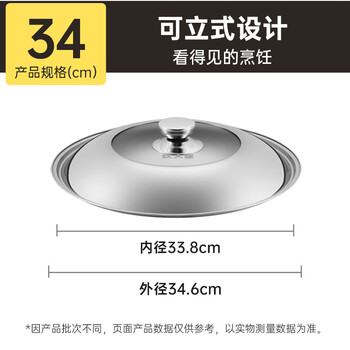 炊大皇 锅盖 组合盖不锈钢锅盖玻璃盖炒锅盖 透明可视34cm