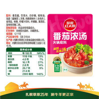 草原红太阳 番茄火锅底料 涮羊肉汤料135g*1