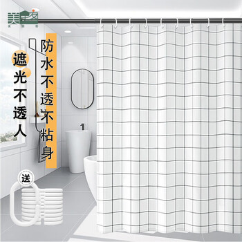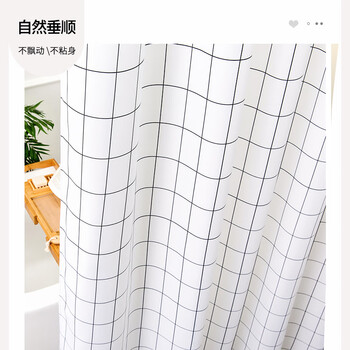 美居客 浴帘 北欧风PEVA加厚浴室淋浴帘卫生间窗帘隔断帘防水不透150*200CM(雅白方格)*1