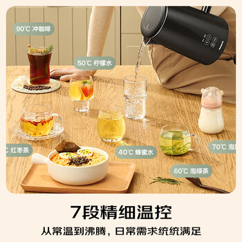 松下(Panasonic)电热水壶 黑色 1.5升 实时显温 多段温控 304不锈钢内胆 保温烧水壶NC-TD151
