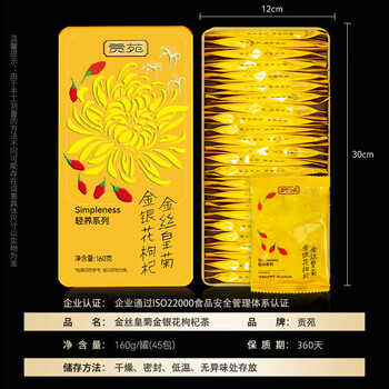 贡苑 菊花茶金丝皇菊金银花枸杞茶组合茶160g/盒*1