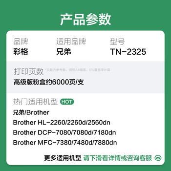 彩格TN2325粉盒适用兄弟打印机墨盒MFC-7380 DCP-7080D DCP-7180DN HL-2260D TN-2312打印机硒鼓墨粉盒1支