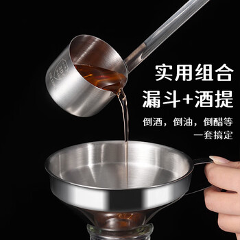 拜杰304不锈钢酒提子漏斗 量酒器带过滤网漏斗酒吊打油勺打酒器套装