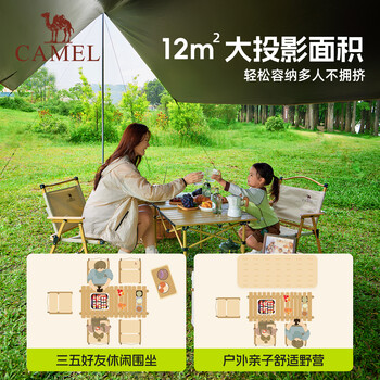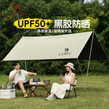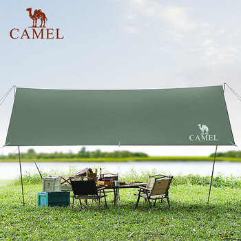 骆驼(CAMEL)户外精致露营黑胶天幕帐篷防雨防晒便携式野营野餐大凉棚 军绿色