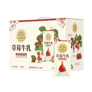 北海牧场 草莓牛乳200ml*10盒 整箱装