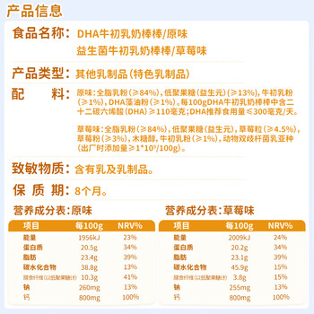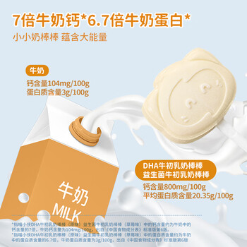 喵小侠DHA牛初乳奶棒棒草莓味 宝宝零食儿童早餐棒棒糖奶片糖果40g