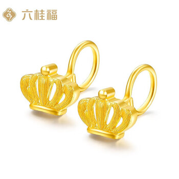 六桂福珠宝 黄金耳钉 皇冠 足金耳钉耳饰女 BE0626 约1.15g