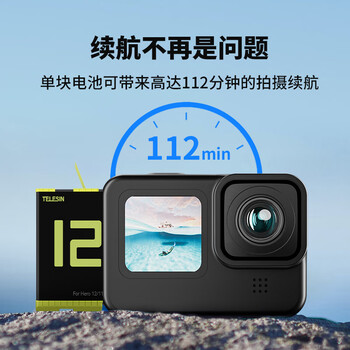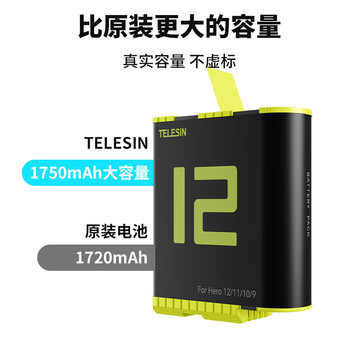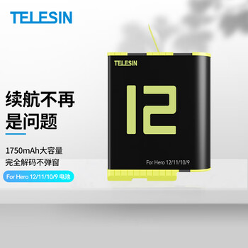 TELESIN(泰迅)适配gopro11电池gopro12全解码电池hero10 9运动相机适用 1750mAh 圆弧不卡机