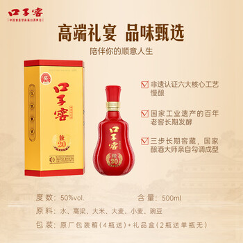 口子窖兼20 兼香型白酒 50度 500ml*2瓶 礼盒装