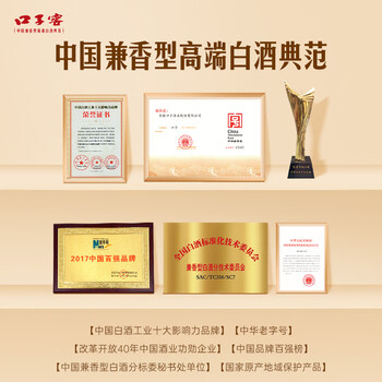 口子窖兼10 兼香型白酒 50度 500ml*1瓶 单瓶装
