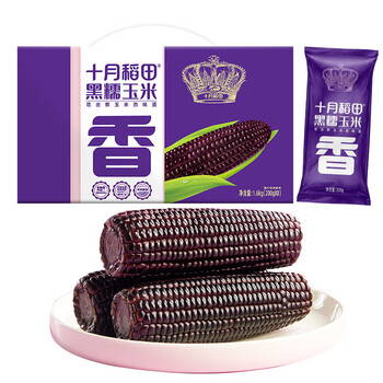 十月稻田 黑糯玉米 8根 3.2斤 代餐早餐 真空包装 花青素 杂粮礼盒