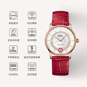 美度(MIDO)瑞士手表 贝伦赛丽系列 华彩款 真钻 时尚优雅 机械皮带女表