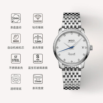 美度(MIDO)瑞士手表 贝伦赛丽系列 典藏款 时尚优雅 自动机械钢带女表