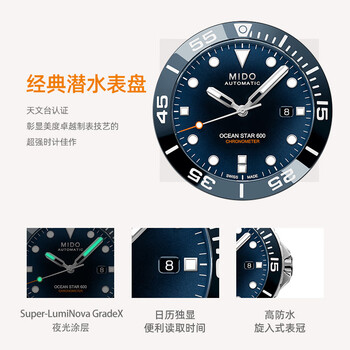 美度(MIDO)瑞士手表 领航者系列 天文台硅油丝 潜水运动 机械钢带男表