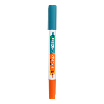 国誉(KOKUYO)进口暗记笔双色荧光记号笔双头学生考试复习重点标记笔 绿/橘 2支 PM-M120-1P