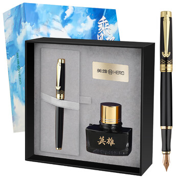 英雄(HERO)钢笔 礼盒10K金笔【乘风破浪系列】国潮钢笔高端日常书写墨水套装黑色