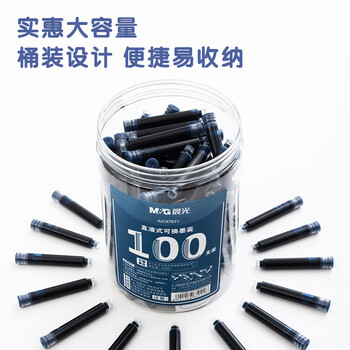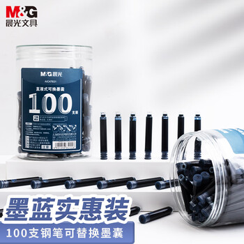 晨光(M&G)文具0.9ml直液式可替换可擦墨囊 学生钢笔墨水笔墨囊 100支装 墨蓝色AIC47631B1