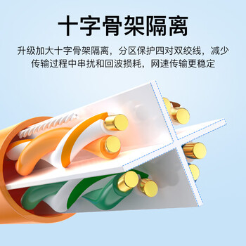 秋叶原(CHOSEAL)原装超六类非屏蔽网线 CAT6A类万兆高速 纯铜线芯 工程家装网络箱线 橙色 50米 QS2668CT50S