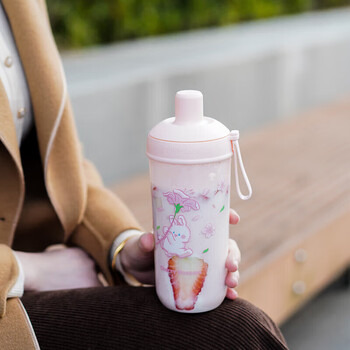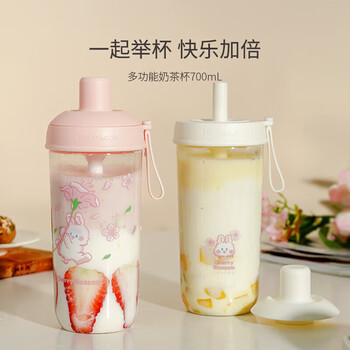 乐扣乐扣(LOCK&LOCK)夏天塑料水杯樱花奶茶杯带吸管户外便携提手男女杯子700mL粉色