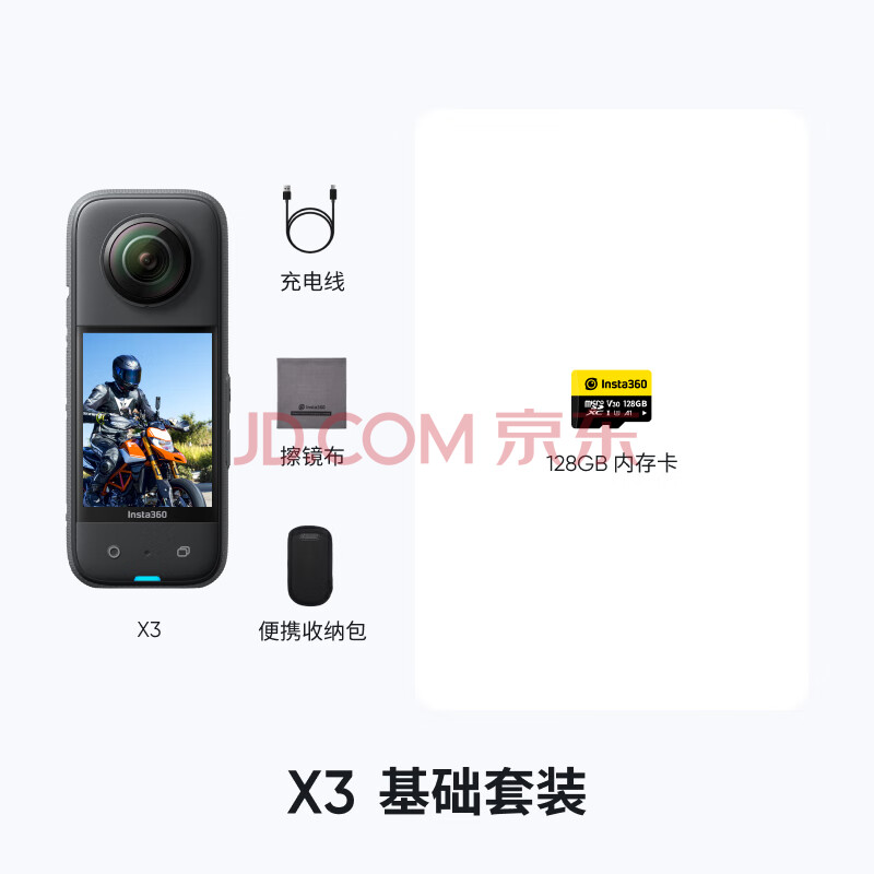 商品相册:影石Insta360影石 X3全景运动相机防抖防水5.7K高清Vlog摩托车骑行滑雪潜水路亚(基础礼盒)第