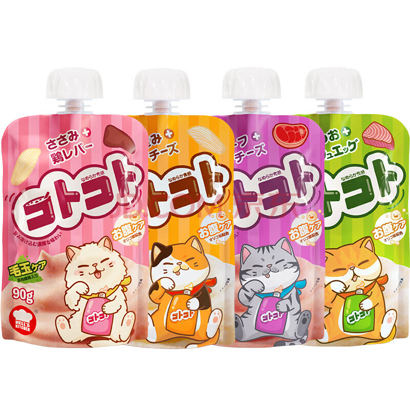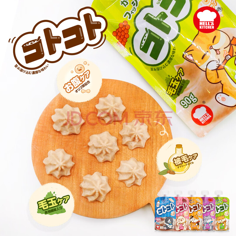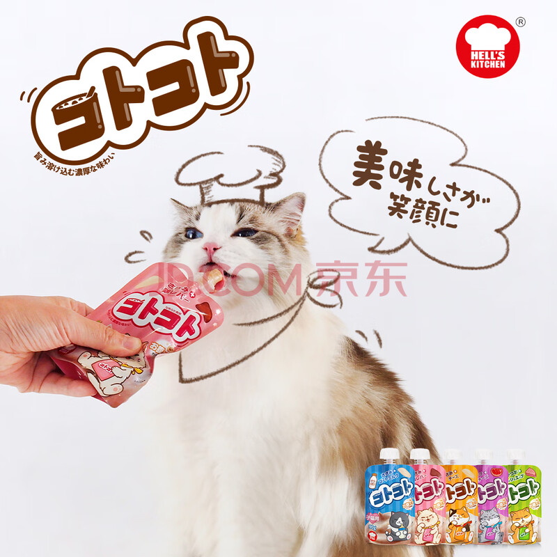 商品相册:地狱厨房(Hell's Kitchen)新食感咕噜酱营养猫条猫湿粮软罐头猫咪零食肉酱 混合装90g*5袋第