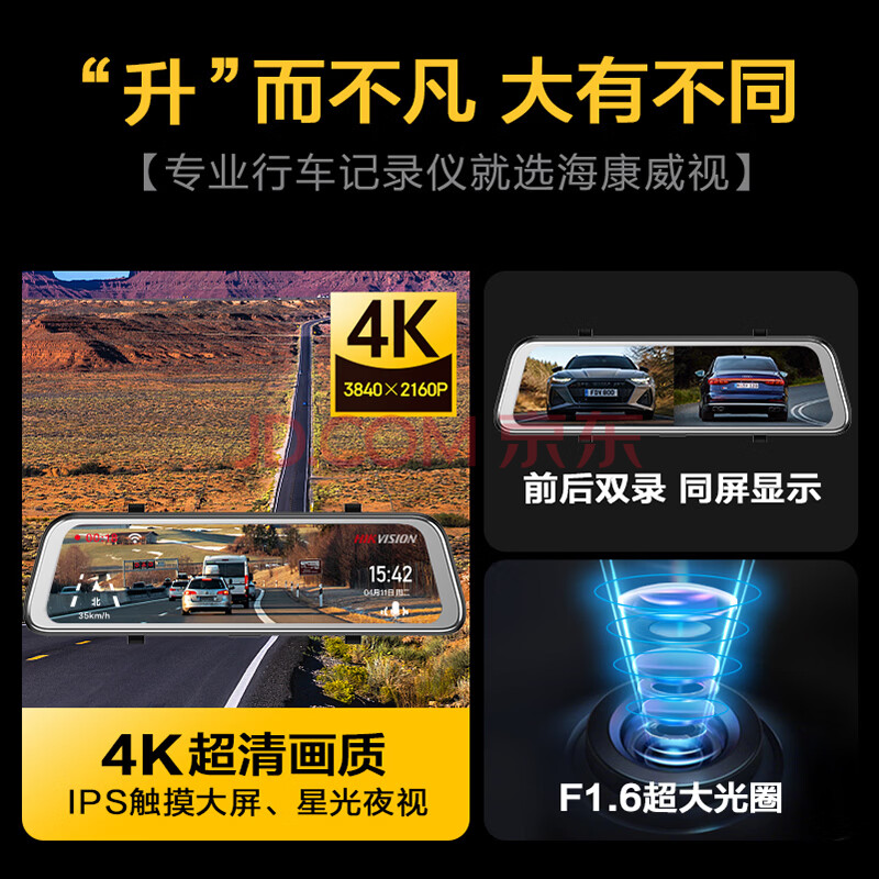 商品相册:HIKVISION海康威视行车记录仪N6Pro 4K超高清夜视前后双录流媒体 倒车影像第