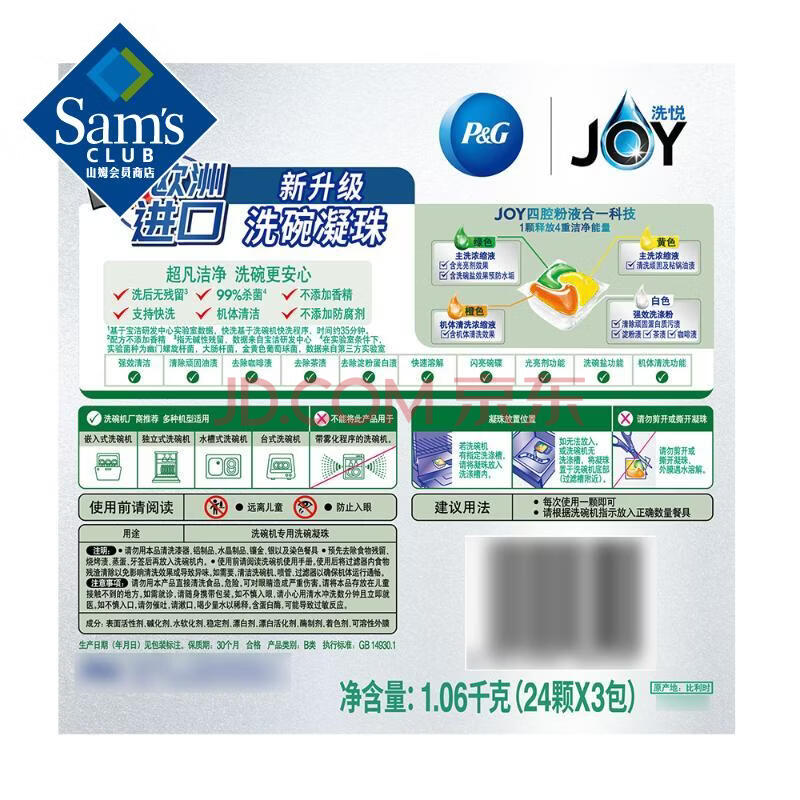 商品相册:比利时进口 洗碗凝珠 24颗*3 354g 3袋第1张/共5