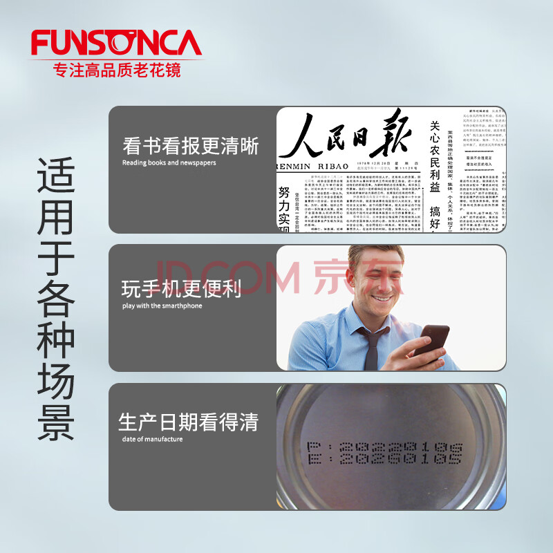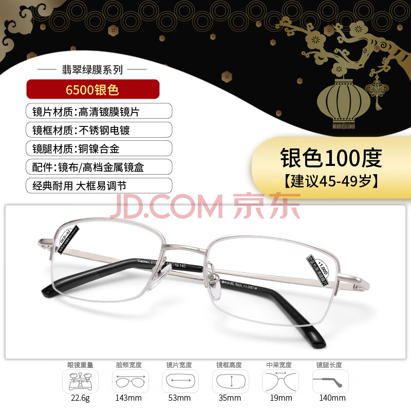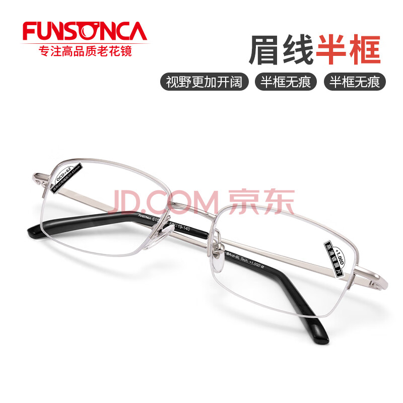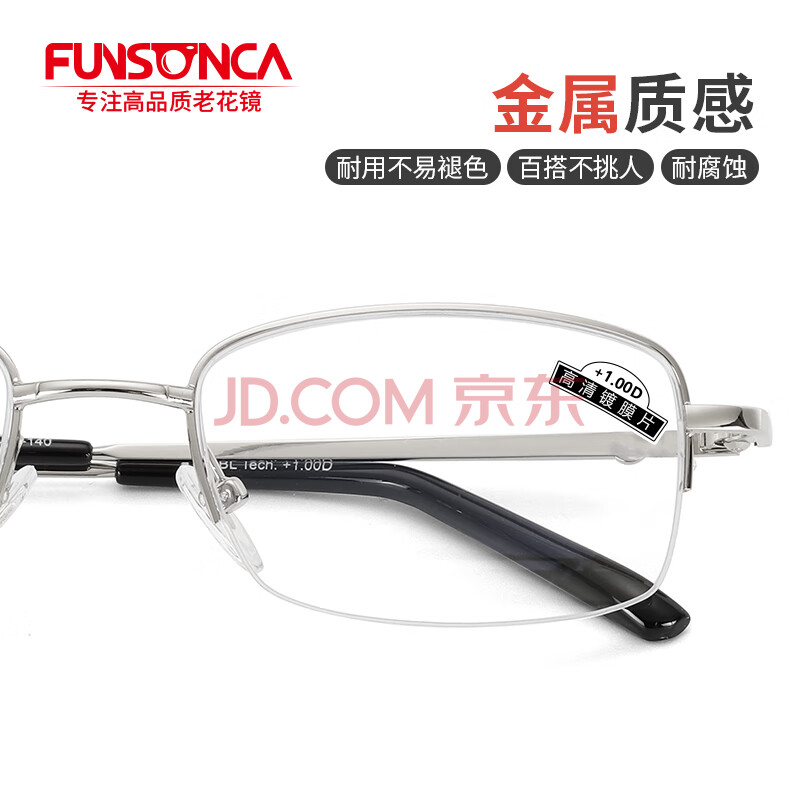 商品相册:幻想家(Funsonca)高清绿膜半框男女通用金属老花眼镜商务耐用舒适时尚经典款100度第