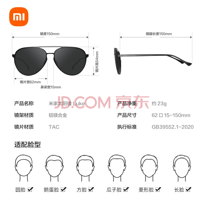 商品相册:米家小米经典飞行员太阳镜 偏光墨镜防紫外线驾驶眼镜 男女通用款第