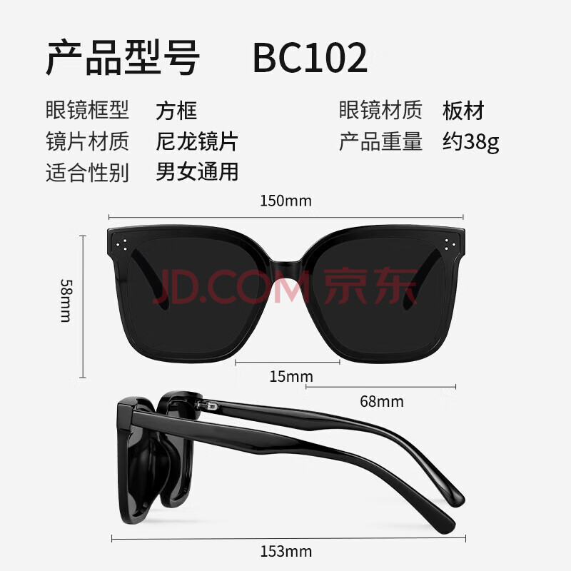 商品相册:普莱斯(pulais)墨镜男gm款毕业季太阳眼镜女防uv遮阳防晒开车专用眼镜BC-102黑色第1张/共9
