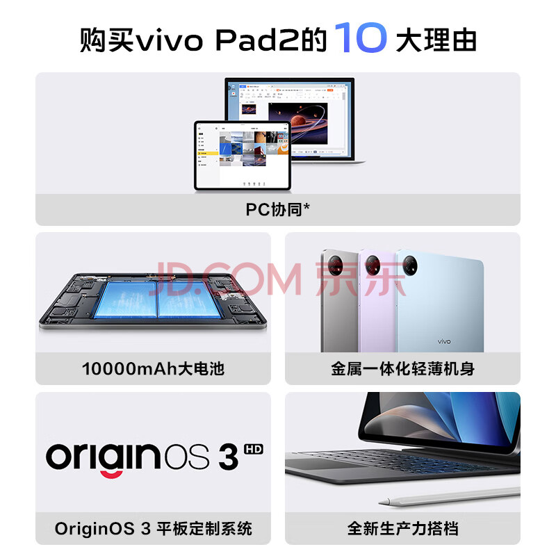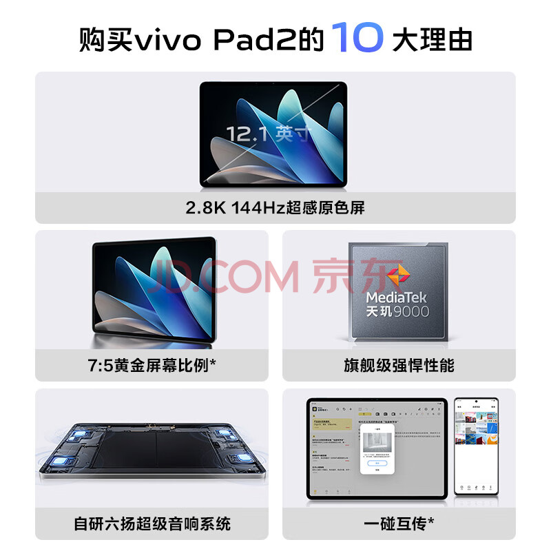 商品相册:vivo Pad2 12GB+512GB 远山灰【平板电脑+智能触控键盘】12.1英寸超大屏幕144Hz超感原色屏 天玑9000旗舰芯片第1张/共8