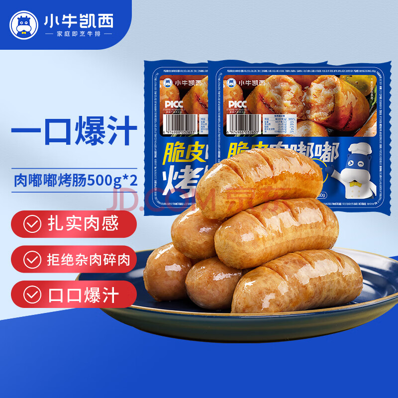 商品相册:小牛凯西肉嘟嘟地道烤肠1000g/20根原味肉肠冷冻香肠肉肠热狗火锅食材早餐第
