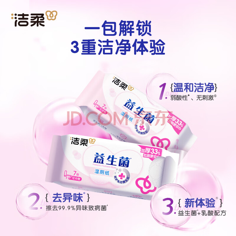 商品相册:洁柔湿厕纸便携装益生菌7片*8包超迷你洁厕湿纸巾厕纸湿巾搭配卷纸第