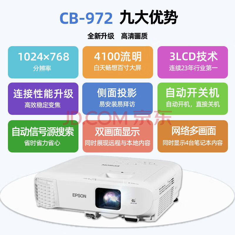 商品相册:爱普生(EPSON)CB-972 投影仪 投影机 商用 办公 会议 (4100流明 标清 双HDMI接口 支持侧面投影 )第