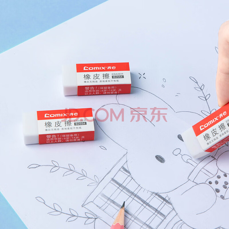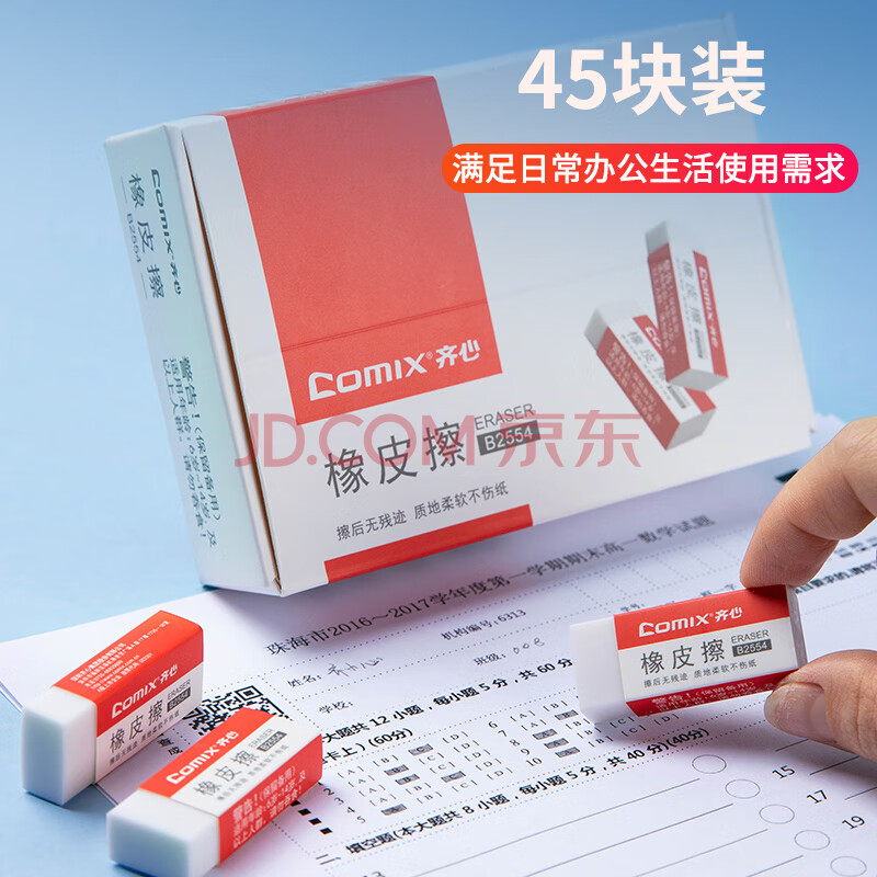 商品相册:齐心(Comix)2B橡皮擦 45块装美术绘画考试橡皮 办公/学生文具B2554第