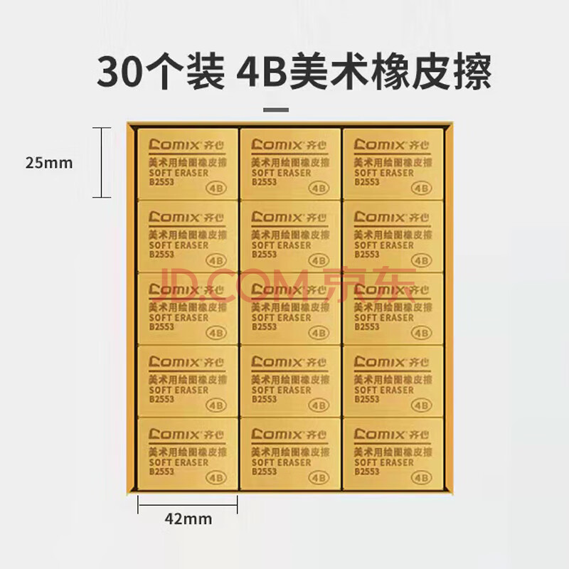 商品相册:齐心(Comix)4B橡皮擦 30块装美术绘画考试橡皮文具 学生用品黄色大号B2553第