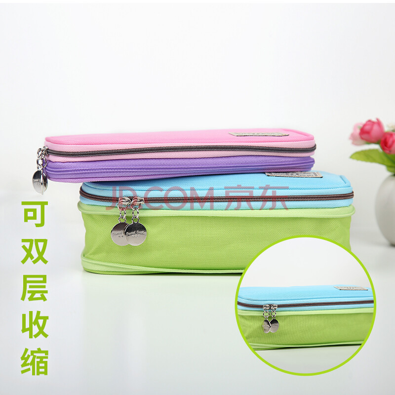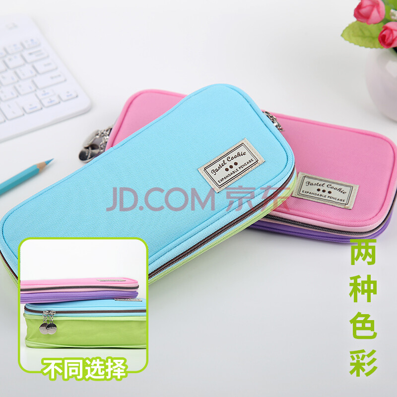 商品相册:国誉(KOKUYO)淡彩曲奇双拉链便携大容量学生文具盒笔袋210*93*30(+40)mm 蓝/绿 WSG-PCC12-1第